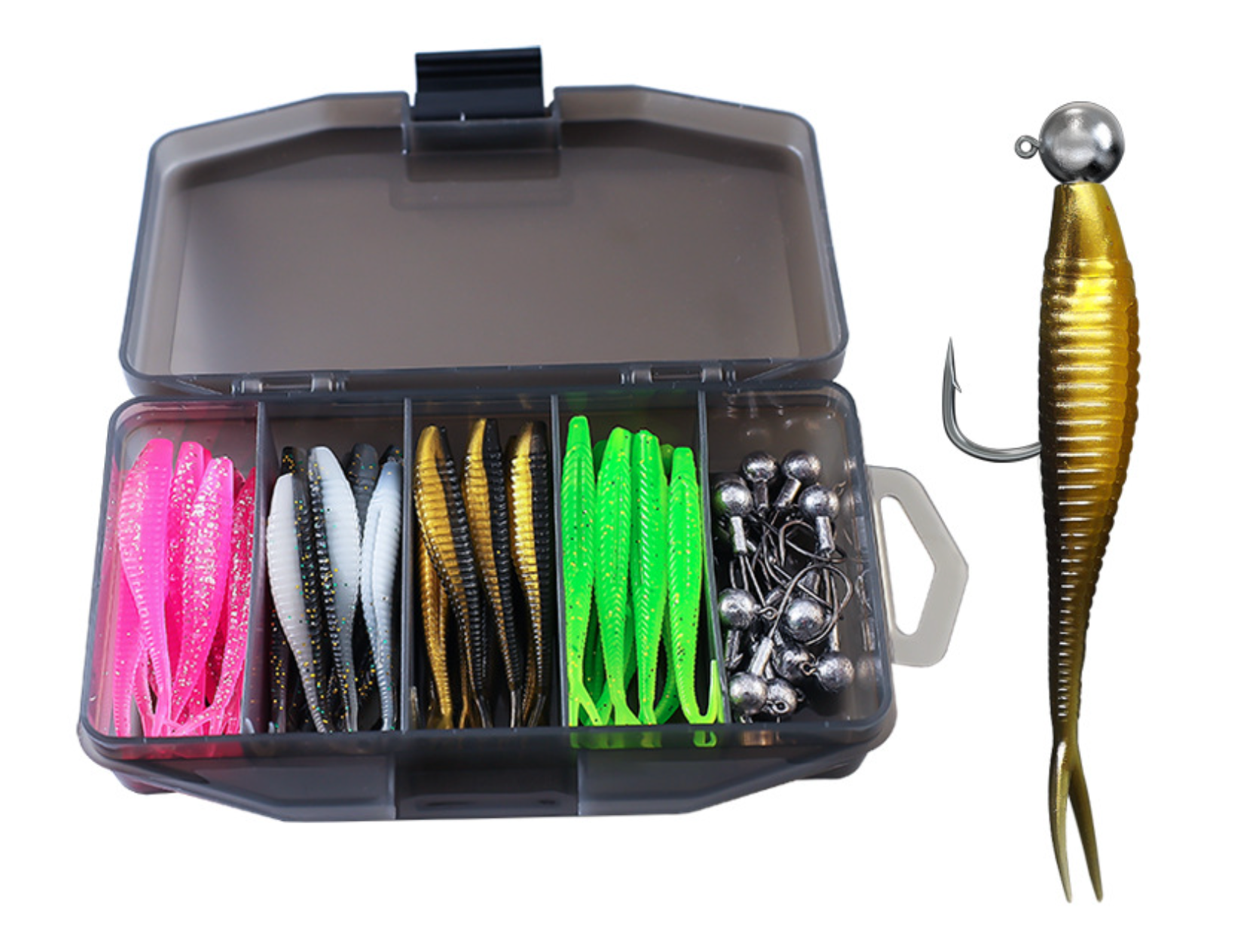 All-in-One Soft Lure Kit – 56 pcs Fork Tail Baits, Jig & Crank Hooks